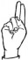 На ћирилици написано АЛЕКСА КЛЕМЕНОВИЋ састоји се из 16 слова [?]. Исписано ћириличном једноручном азбуком за глувонеме: